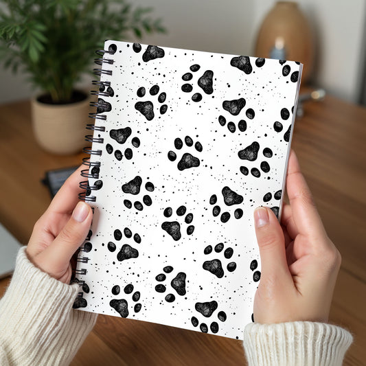Paw Print Spiral Notebook — Black & White Cute Animal Journal (Ruled)