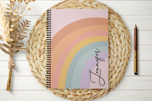 Personalized Pastel Rainbow Spiral Notebook — Custom Name Ruled Journal
