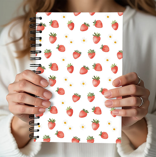 Strawberry Pattern Spiral Notebook — Ruled Journal for School & Notes